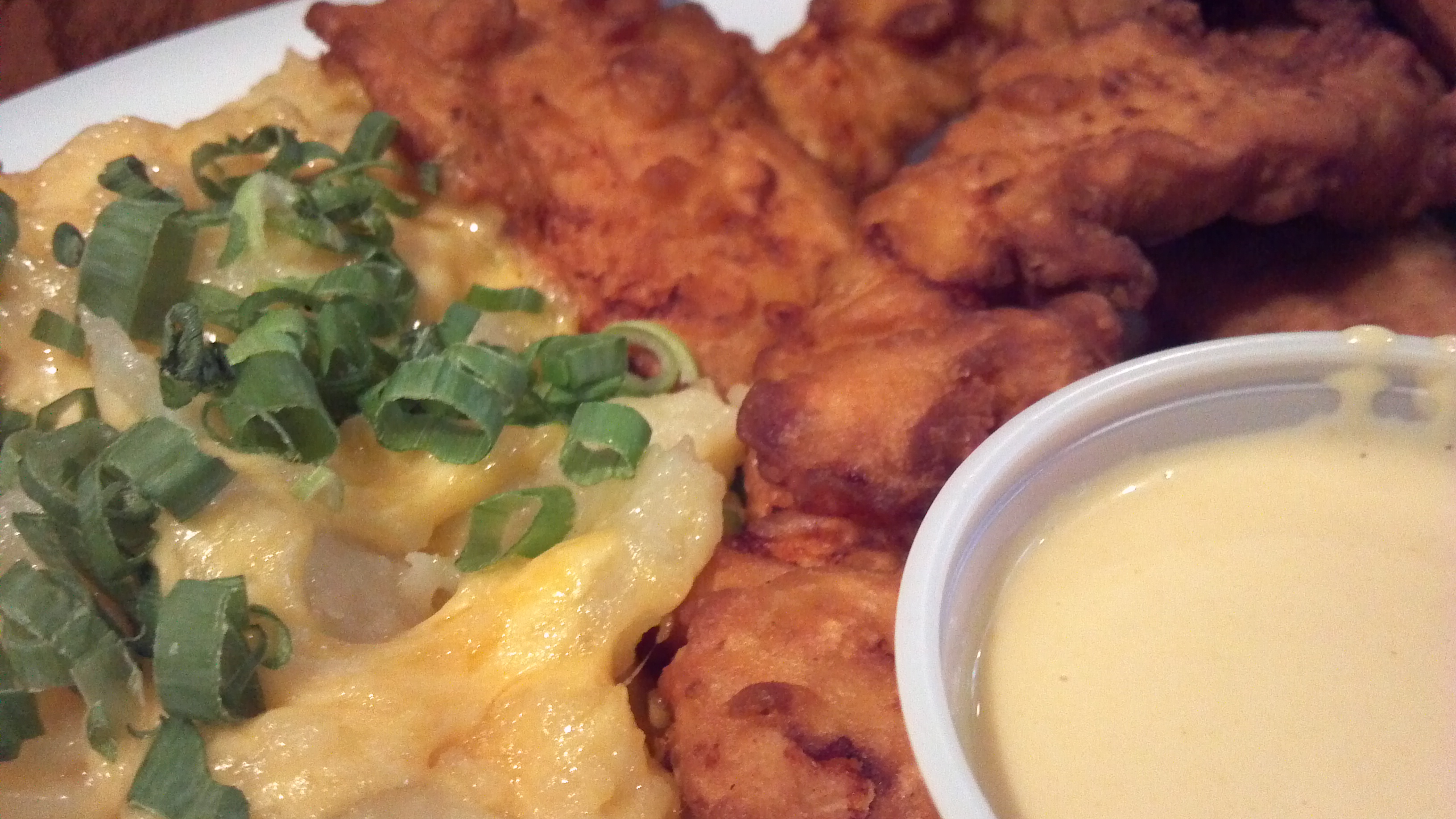 Jill ordered the usual chicken fingers and nachos again with some ooey gooey au gratin potatoes.