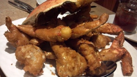 The plate of cracked shells and bits of batter looked more like a crab graveyard than a plate of food. We didn’t know what happened, but the dish was gone. We could have eaten another, but no. So we move on.