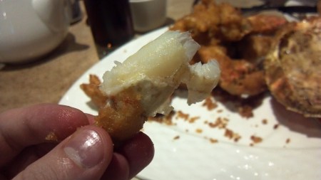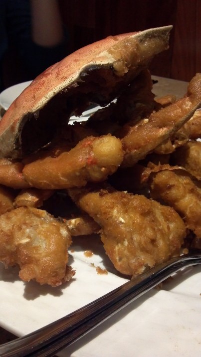 The dish is presented with the top shell and all. The amateur would think this was merely for show. Hecks no, but I’ll get to that in a minute. The legs are all broken at the joints and placed in mound on a large plate. It’s that simple, but it’s that perfect. It is a spectacle to look at. The dish is both brown and beautiful. It’s not even like it’s your typical fried food – it IS a delicacy – and for $42 you sure would hope so.