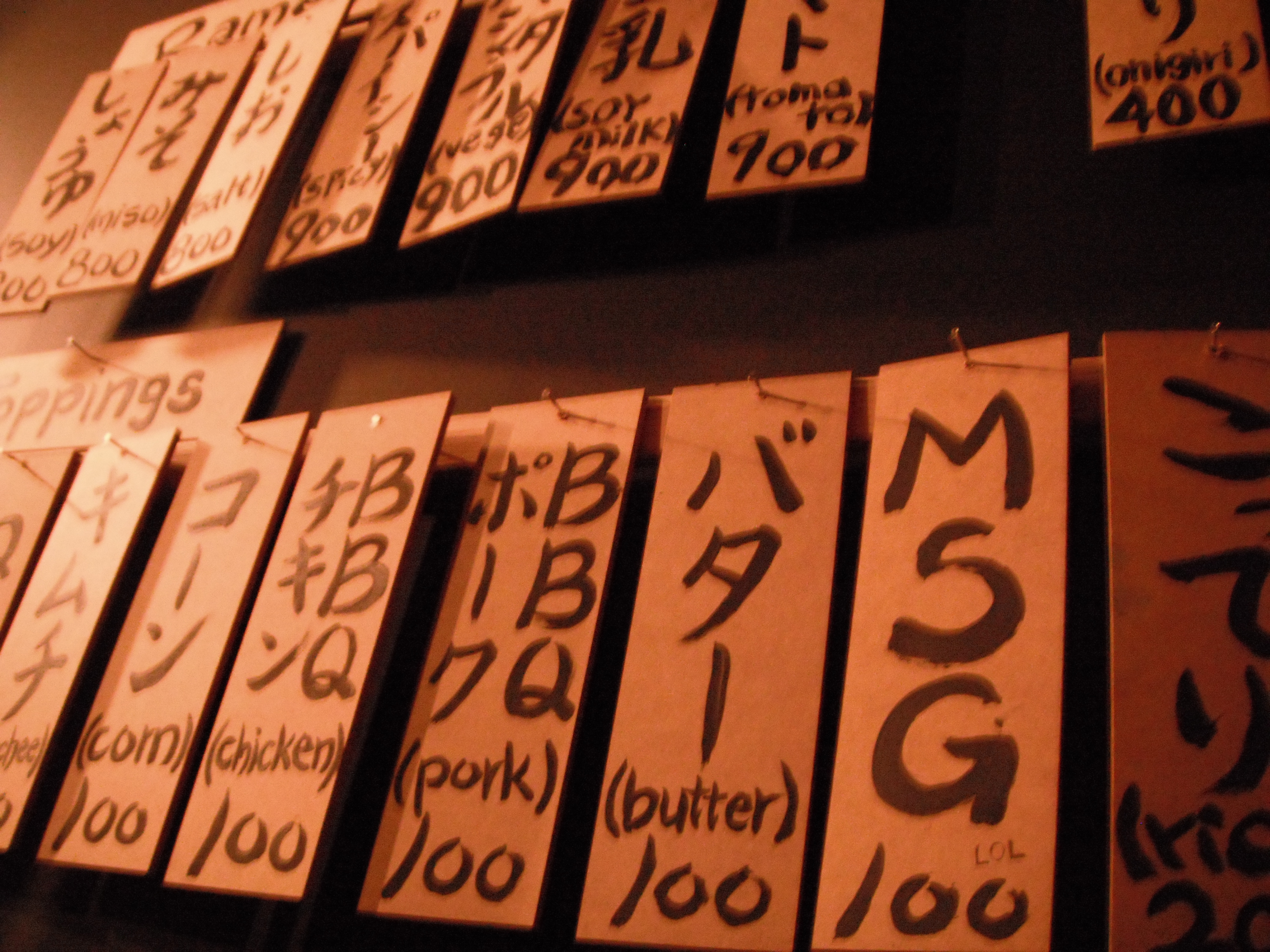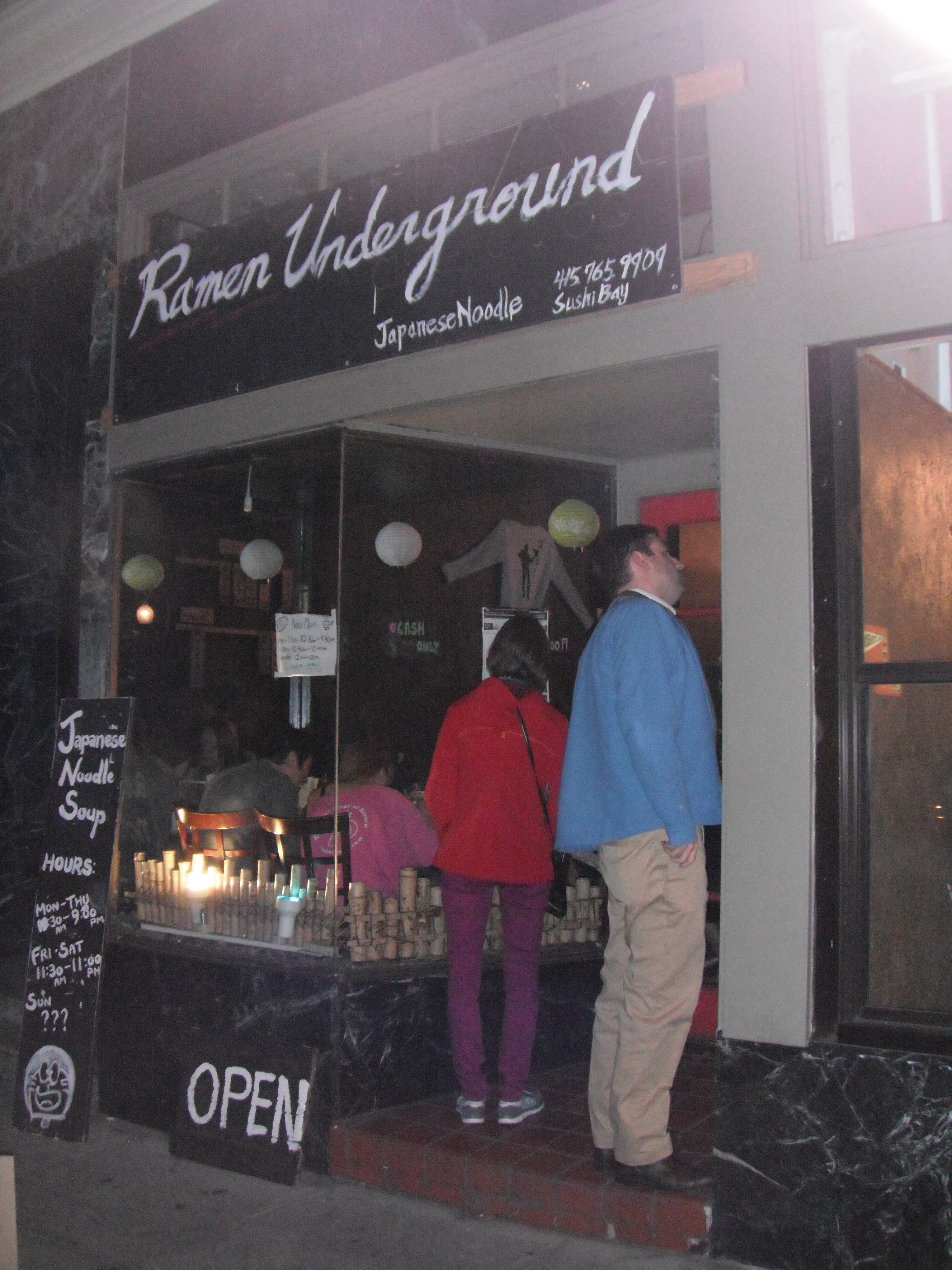While looking for a convenience store in San Francisco I ran into a place that had bunches of young folks hanging outside waiting for a table. As I got closer I could barely make out the word Ramen on the sign…uh oh…now we have to go. Finally, I could read The Ramen Underground (355 Kearny Street, San Francisco) – and it looked awesome. At least twenty people were waiting for a seat – there are only 19 – in the small space.