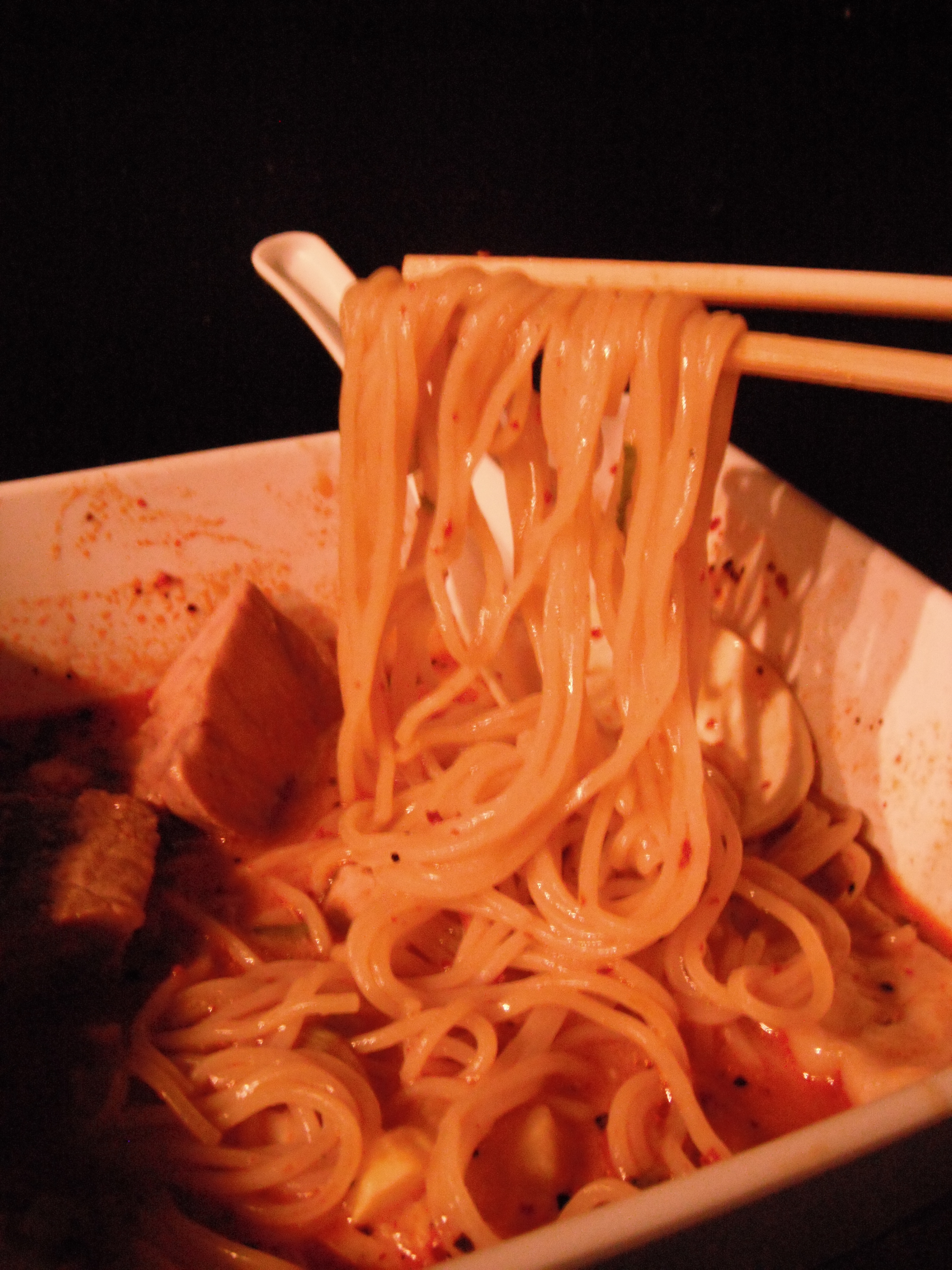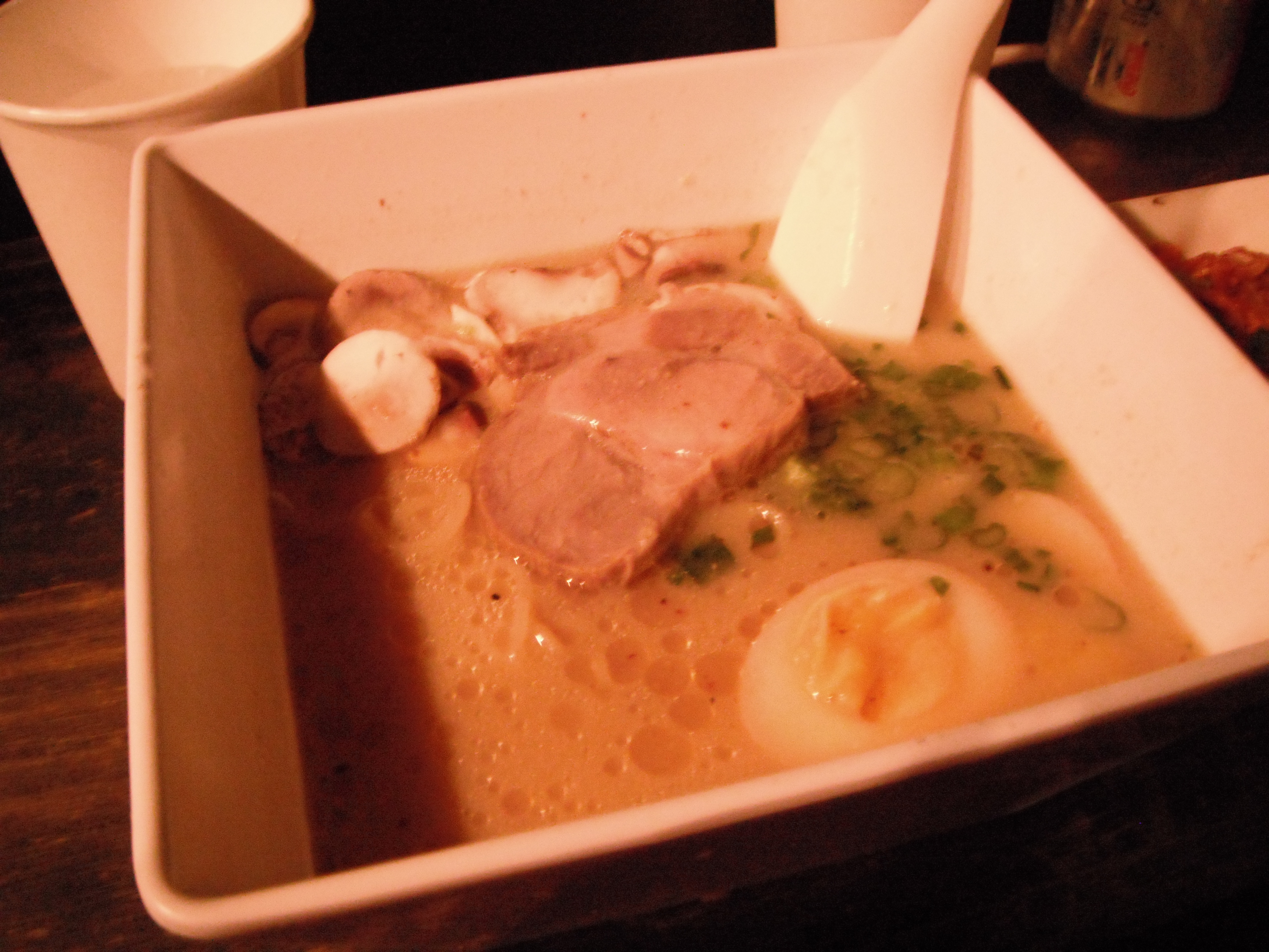 The ramen was fantastic. Excellent layered flavor with mushroom, earth, savory savory miso and umami qualities. Really fantastic. The broth had a nice mouth feel, but too thin or thick. The finish even stayed with you for a bit. My spicy miso definitely had a nice kick to it and it was right up my alley. You could see the red hot chili flakes sticking to the side of the dish after much of the liquid was gone. It cleared up my sinuses and satisfied my craving on a chilly California evening.