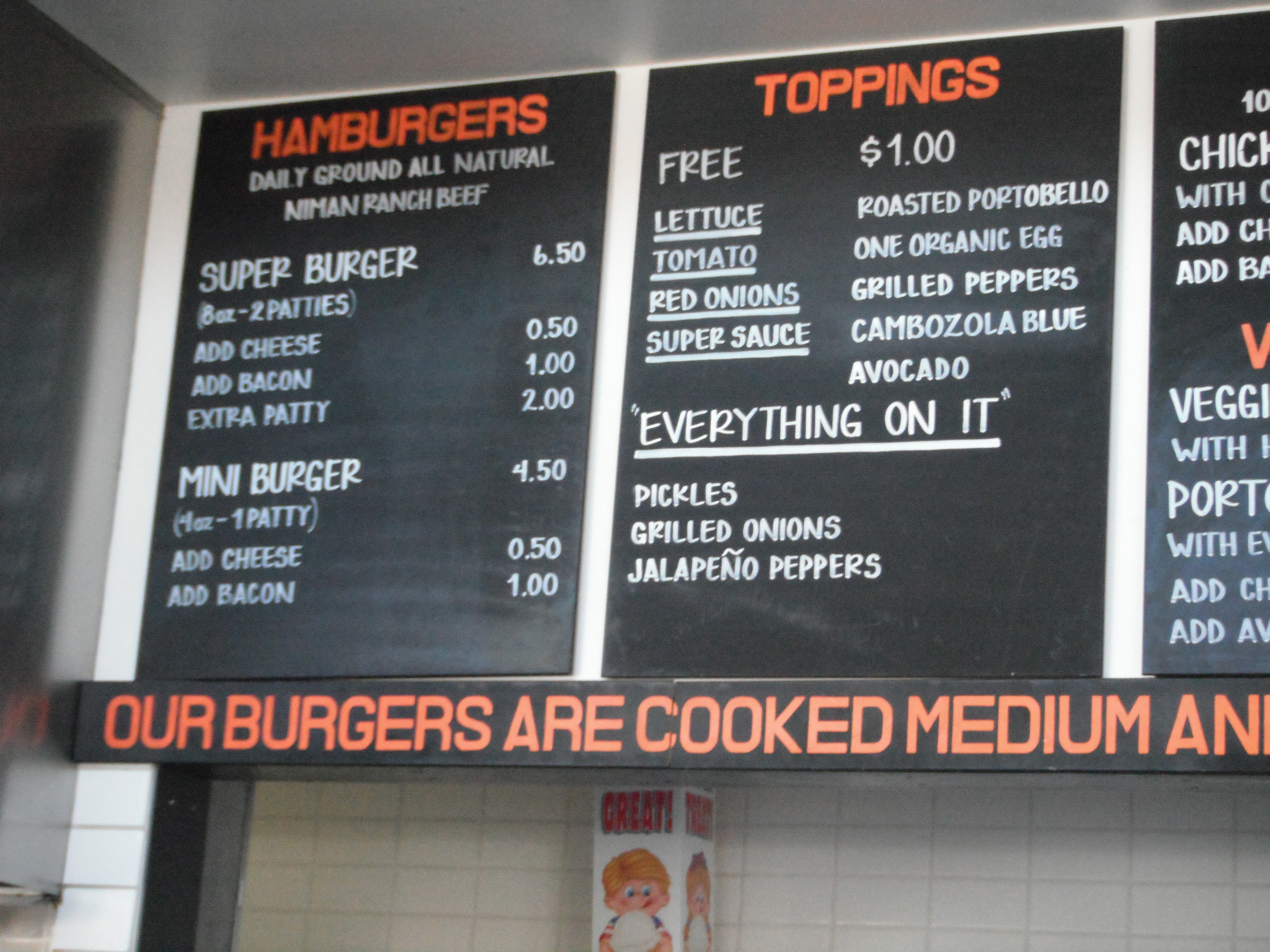 Friendly and passionate staff, an open kitchen that shows how artfully and carefully your food is prepared, and a super fresh product are all ingredients for a well run quick service restaurant. Super Duper has my vote and I’d go back in a heartbeat if in that area again. But there’s more burger eating to do…