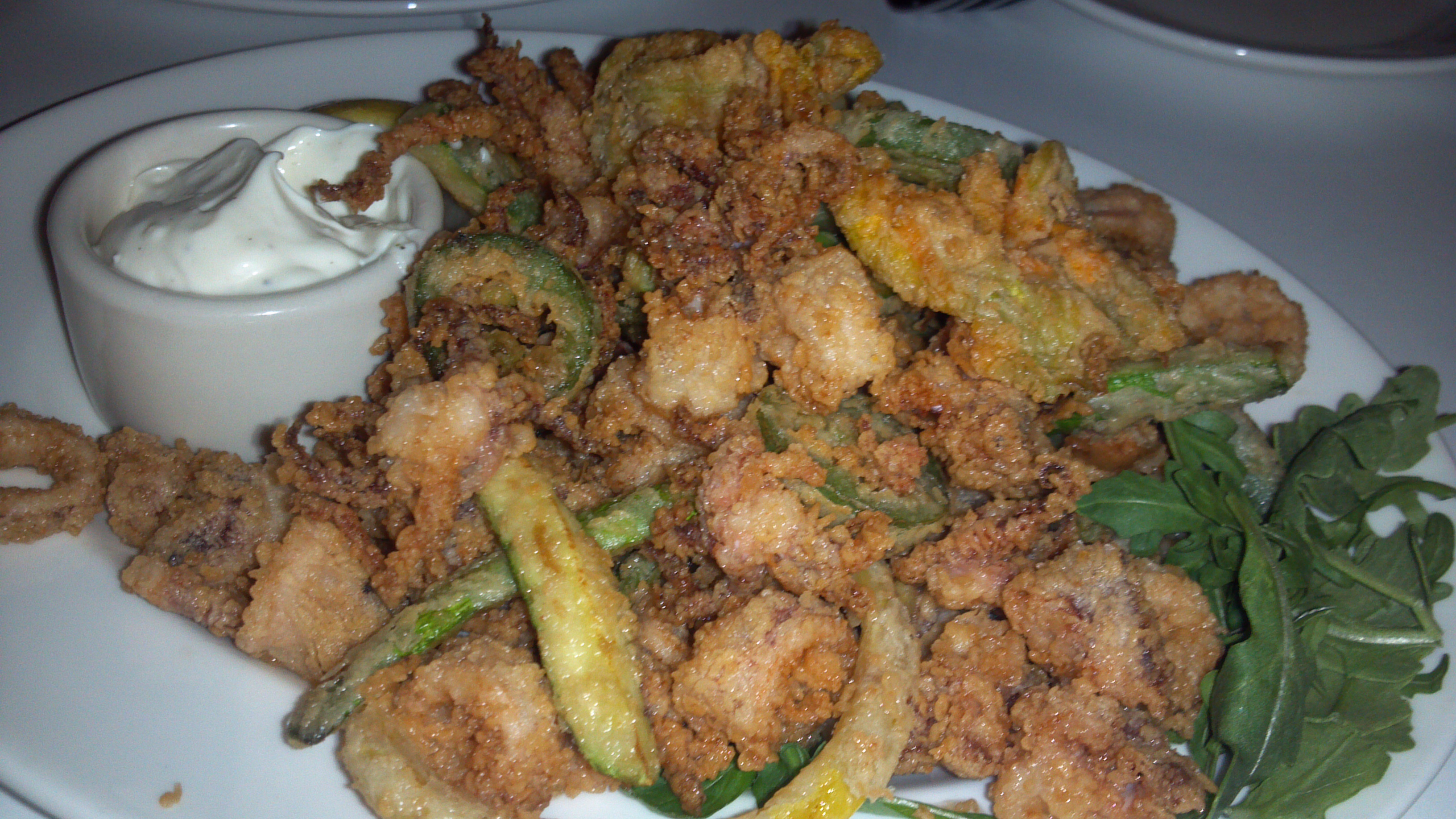We had obviously been eating all day long, so we chose wisely at dinner – we planned to keep it lighter so we wouldn’t completely burst. We sat down in a cozy back dining room of the restaurant and ordered crispy calamari to start. Their version was served with similarly fried garden beans, jalapenos and baby zucchini. A lighter lemon aioli was served alongside the appetizer which wasn’t too thick or creamy. Offering the veggies alongside the calamari was excellent. Different flavors and textures as opposed to only the squid ensured you didn’t get bored with the dish.