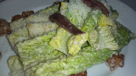 We went with a Caesar salad as our second course. Served with whole leaf romaine – something both Jill and I like to see – the dressing wasn’t too heavy or cloying. Nice anchovy flavor accompanied by super high quality Parmesan and ingredients proved to be successful in this adaptation of a classic.