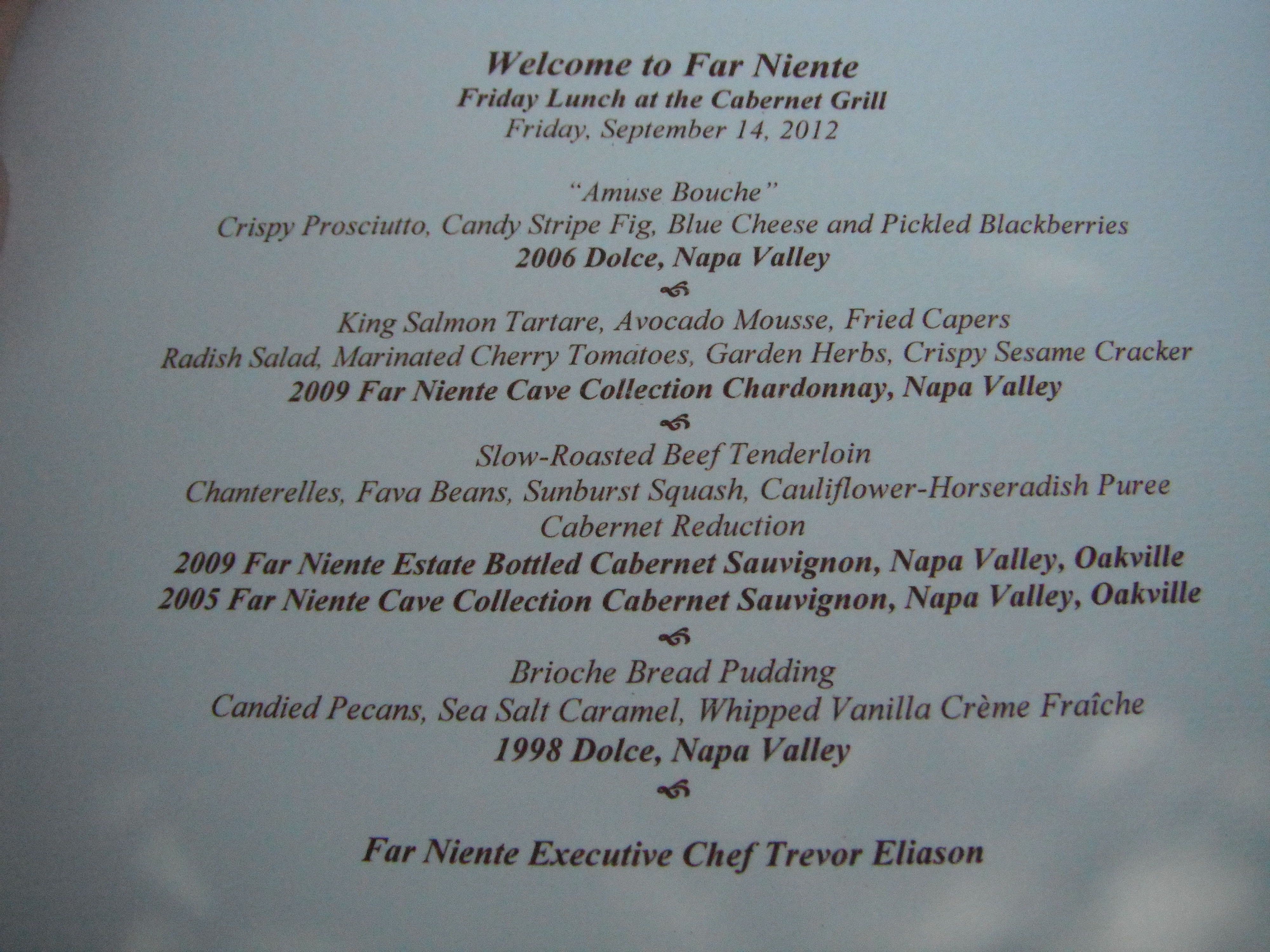 Scott, Thanks for the really nice words about your experience at Far Niente. It was a particularly beautiful day. I look forward to our Far Niente dinner at Chicago Cut on November 8th. See you then!