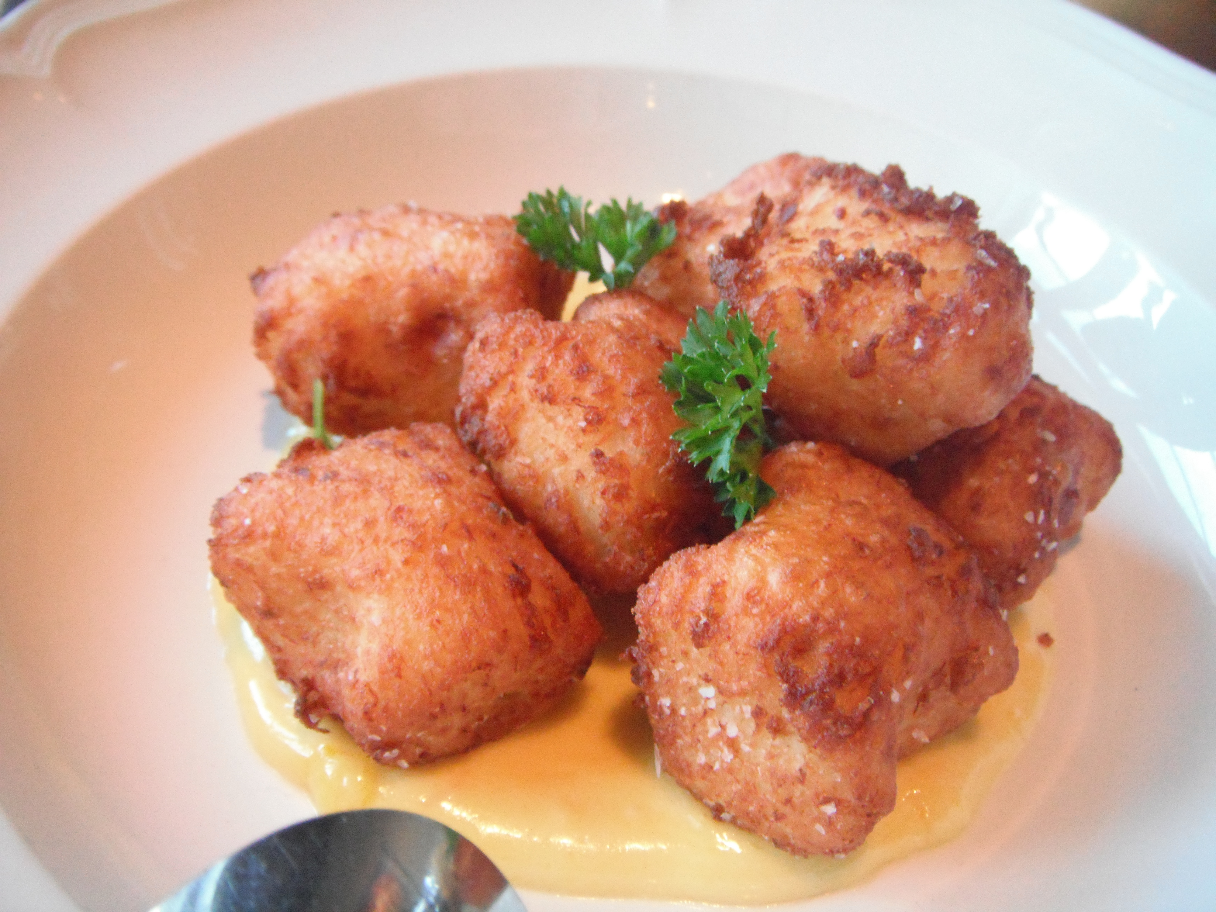Lastly, we opted for the crispy Bacalao fritters. Salted cod was lightly battered and fried. Deliciously fishy, a little salty, and expertly fried, we loved every bite of this appetizer. The little golden brown pillows were served in a light saffron broth. Just right. Now onto the main course – Cindy’s Backstreet for dinner.