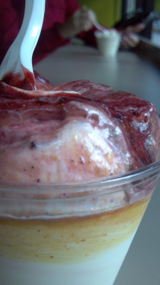 They take their delicious vanilla custard and “lightly” blend it with a home made liquid peanut butter reduction. It’s finally topped with a rich but fresh and tart blackberry sauce. It’s splendid. You can close you eyes and taste a PB&J with milk. For real. What makes Scooter’s even better? The staff.