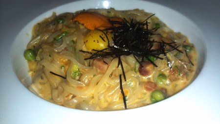 We planned ahead on ordering the sea urchin carbonara. Hand made udon noodles tossed in a traditional creamy carbonara with house smoked bacon, crispy shallots, a couple lobes of uni and some crispy shallots. It was absolutely one of the highlights of the evening.