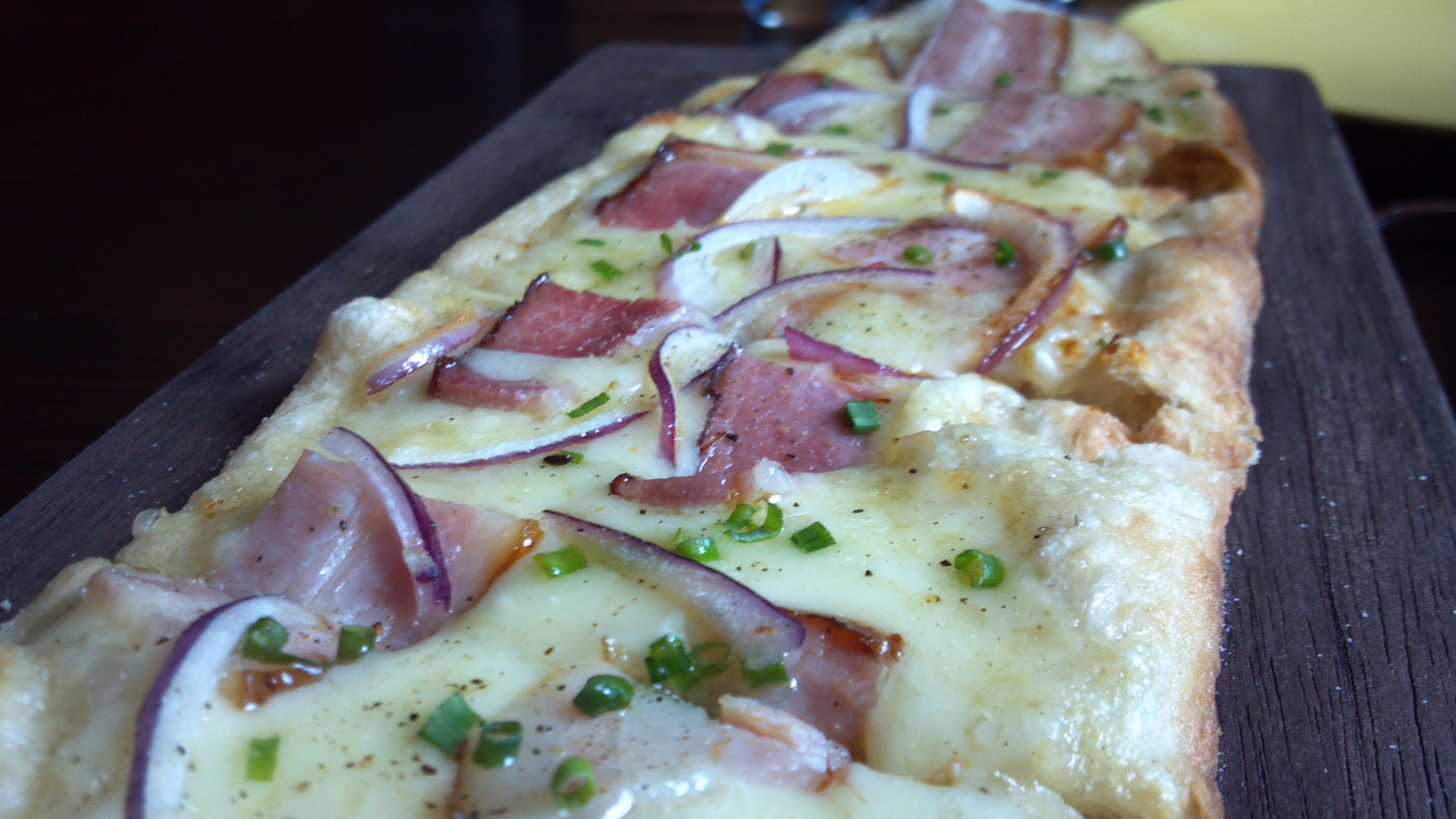 We started our meal with their Tarte Flambee, a traditional Alsatian pizza prepared with a sharp fromage blanc, creme fraiche sauce, lardon and thinly sliced onions. Served in its traditional rectangular shape, the crust was crispy and stood up when held up.