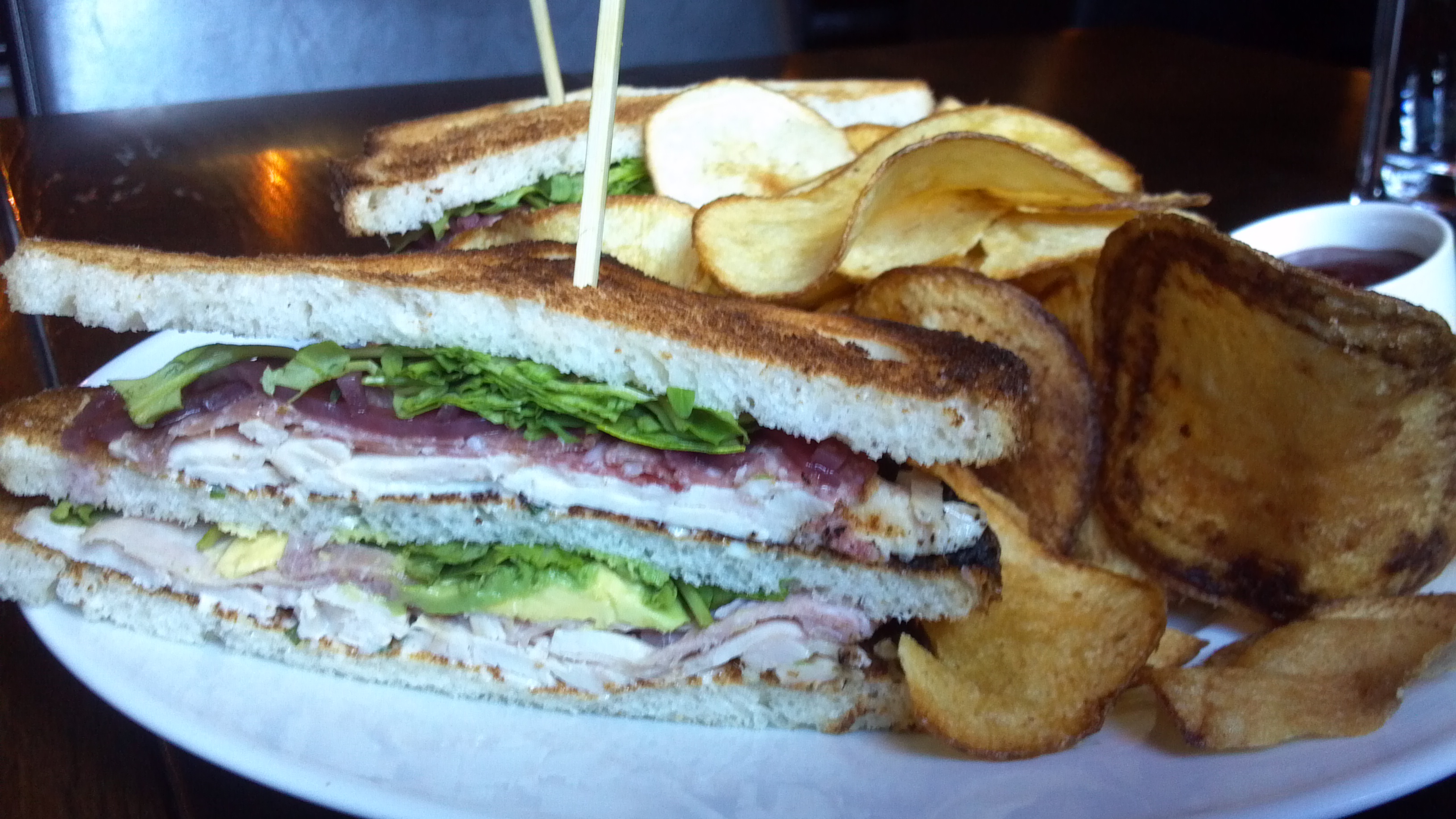 The club sandwich is something unique. There are many ingredients in this epic club, yet it doesn’t stand as high as others. Why? So you can actually fit the darn thing in your mouth without injury. Okay, ready. Three slices of bread carefully layered with grilled chicken, smoked ham, house made salumi, avocado, hard boiled egg, bacon, lettuce, tomato and an herb mayo…phew.
