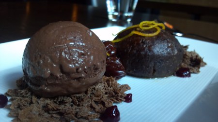 Okay, gorgeous looking dessert time. I first present chocolate cake and chocolate ice cream – turned to up 11.