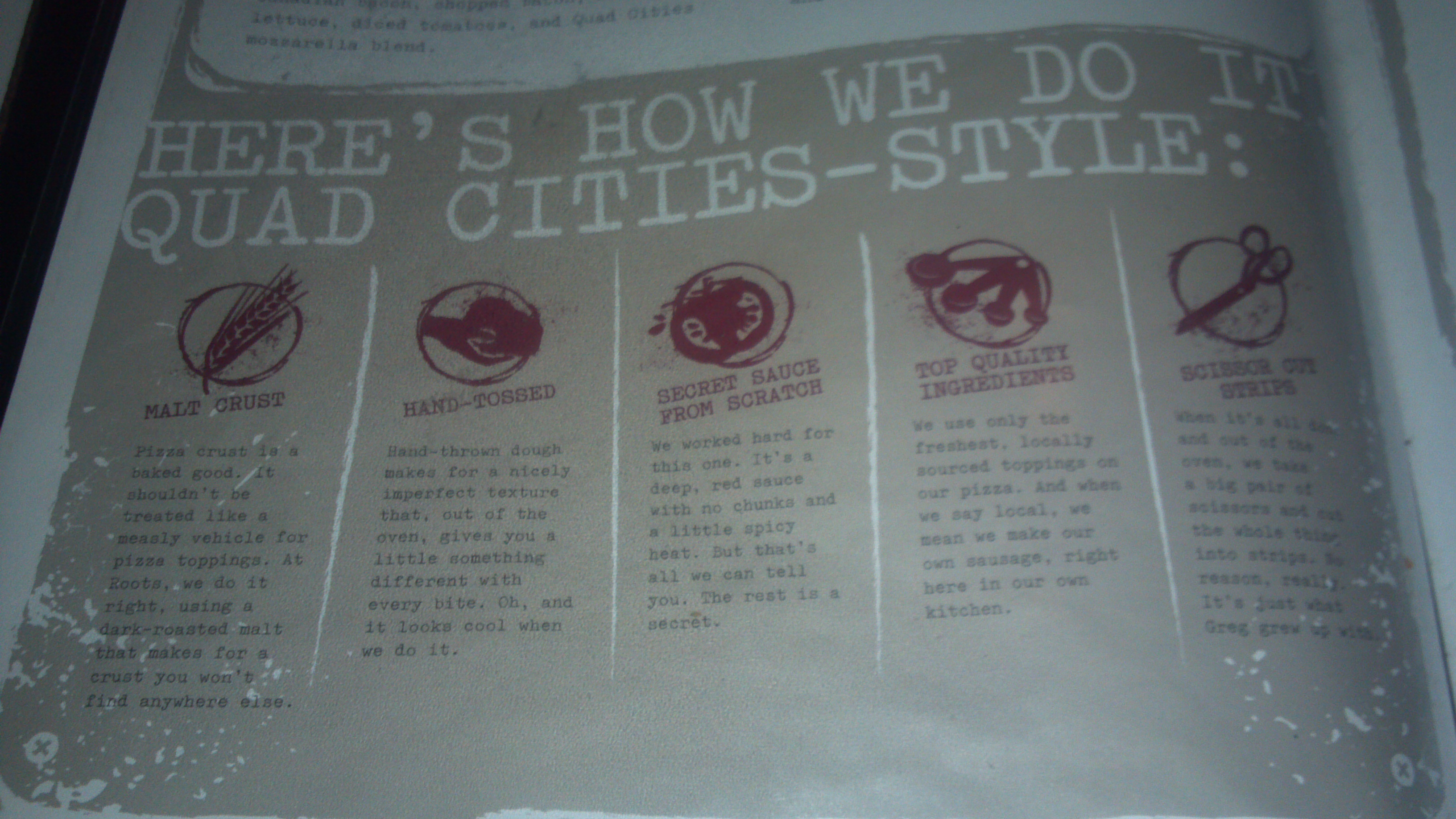 Roots Pizza (1924 W. Chicago Ave.) was created by the brain behind The Fifty/Fifty sports bar on Division in Chicago.  They feature Quad Cities style pizza that uses malt in its crust to create a more flavorful product with a nice balance of crunch and chew.  Another hidden gem on the menu is their homemade Root Beer.  It has great balance and isn’t too sweet.  I recommend trying a bottle.  Plus the label is cool.