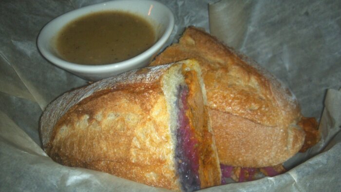 I ordered one of their signature sandwiches made toasty in their wood burning oven. The Cochinita Pibil is a slow roasted pork delicacy. This wood roasted suckling pig is served on a warm crispy baguette accompanied by achiote – a paste derived from a Mexican shrub that gives the meat a smoky robust flavor. Black beans, pickled onions and a spicy habanero salsa complete the dish.