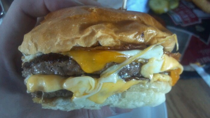 This is Wisconsin so they insist in topping their namesake burger with THREE different kinds of cheese. American, Swiss and of course, Wisconsin Cheddar are skillfully laid fully covering the (two) beefy discs of goodness.