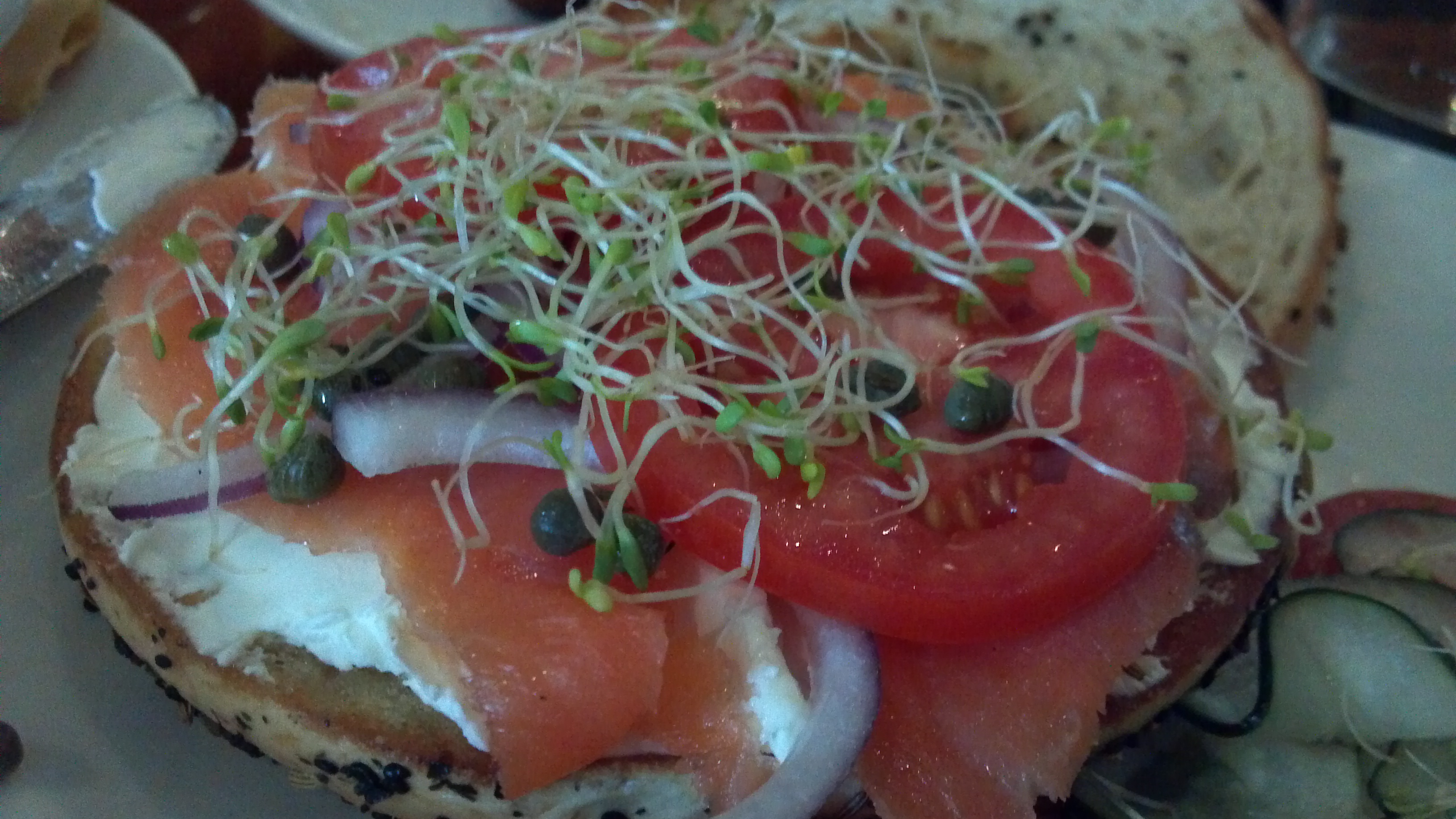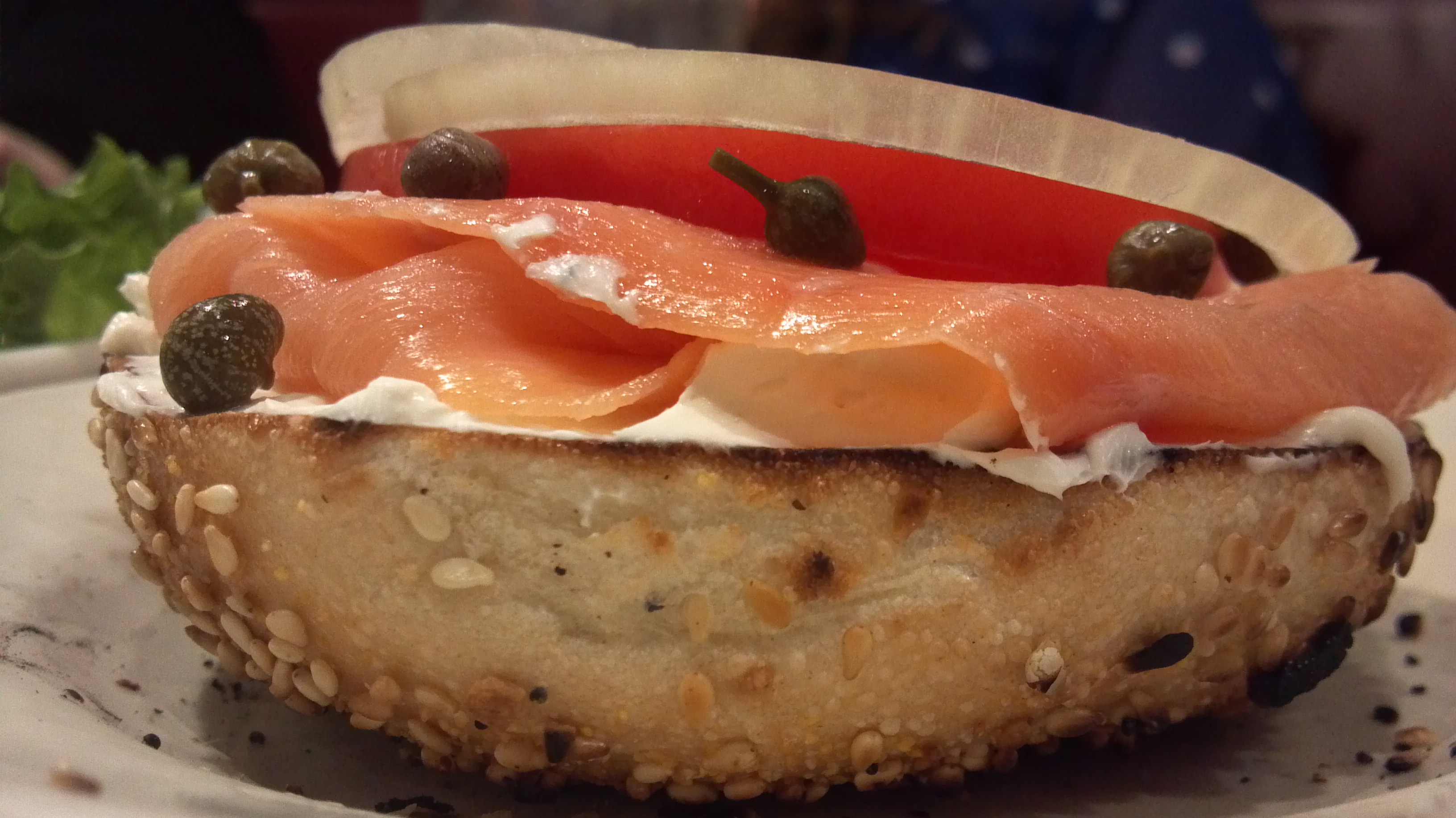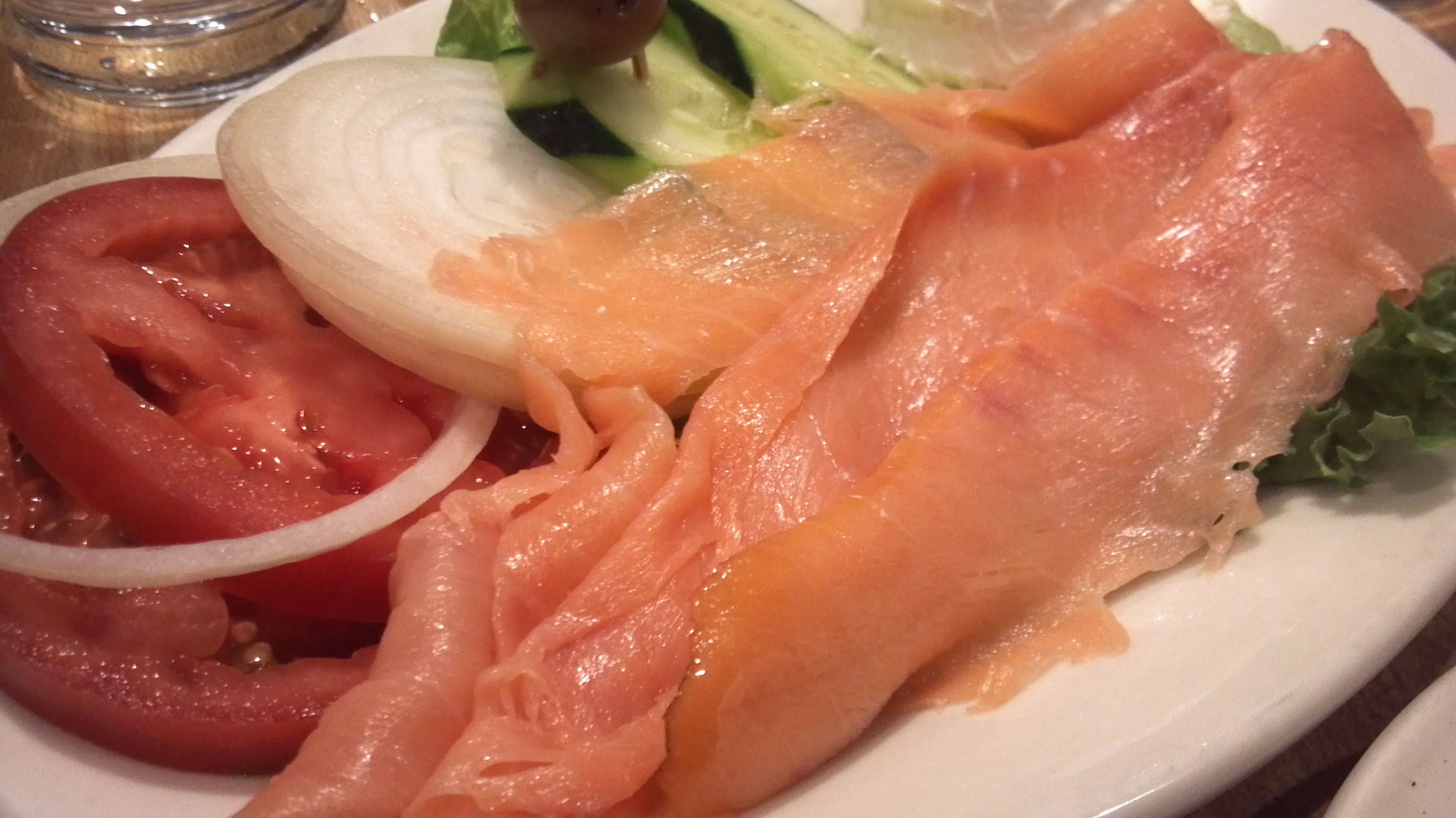 Always hand cut, a plentiful portion is served platter style allowing you to construct your own sandwich. I always seem to have some leftover slices even after layering more than enough on top of both bagel halves. The natural oils in the fish are flavorful and set Max’s apart from most other delis.