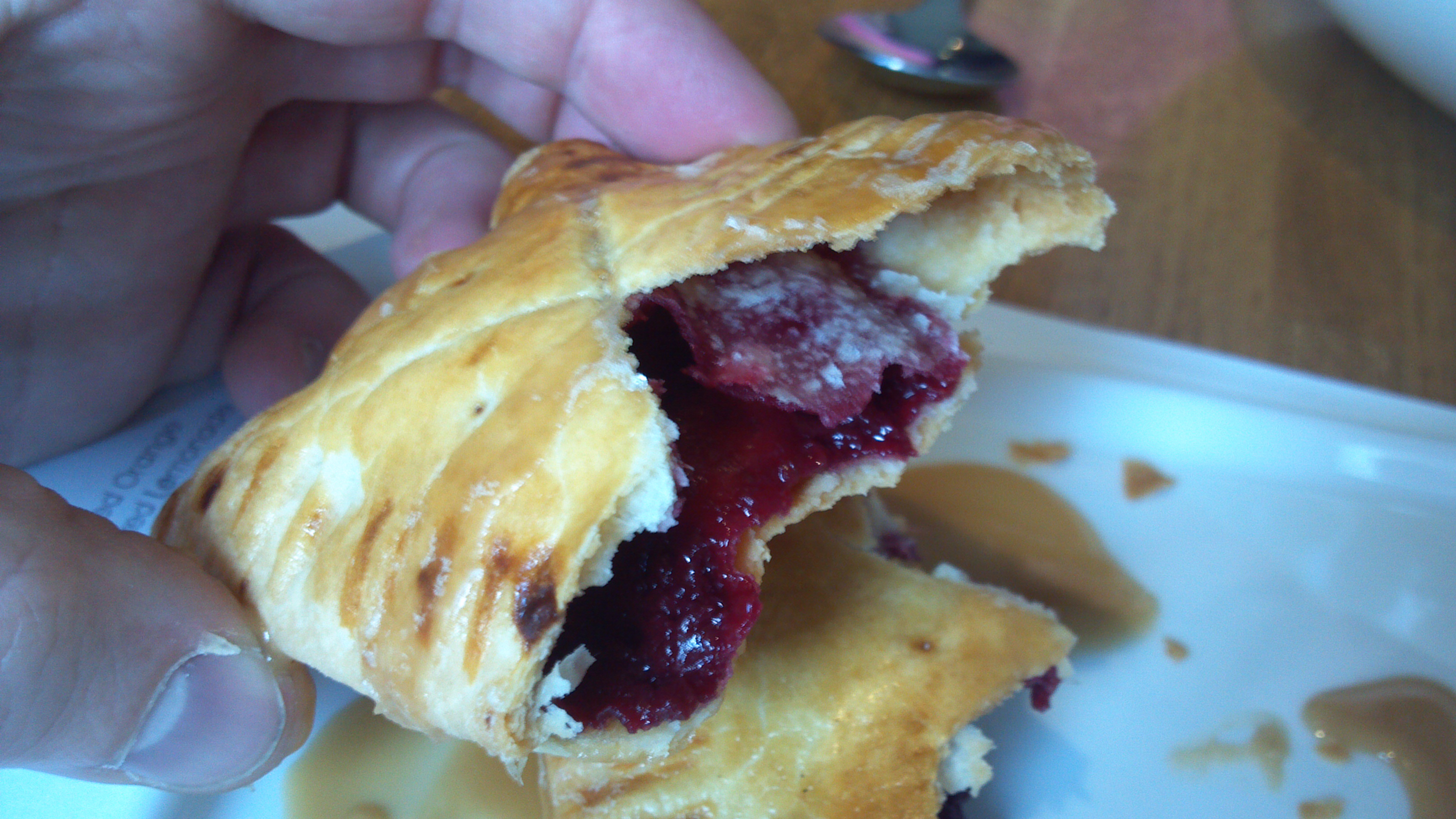 The kitchen was nice enough to send out a complimentary homemade raspberry pop-tart along with the Shrimp n Grits. It was light and flaky, not dry one bit. The filling was ample and very flavorful. Not too sweet, a little tangy. I enjoyed the bits fruit and seed as well. The dish was finished with a light vanilla glaze – very well done.