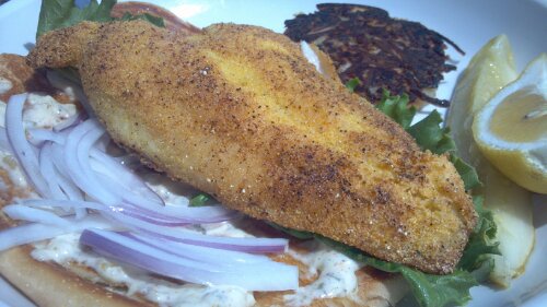 Then came the Catfish Po’ Boy. I have never ordered Catfish anywhere – ever. Both Jill and I agreed that this would be the place and time to give it a shot – sandwich form. The catfish itself was excellent.
